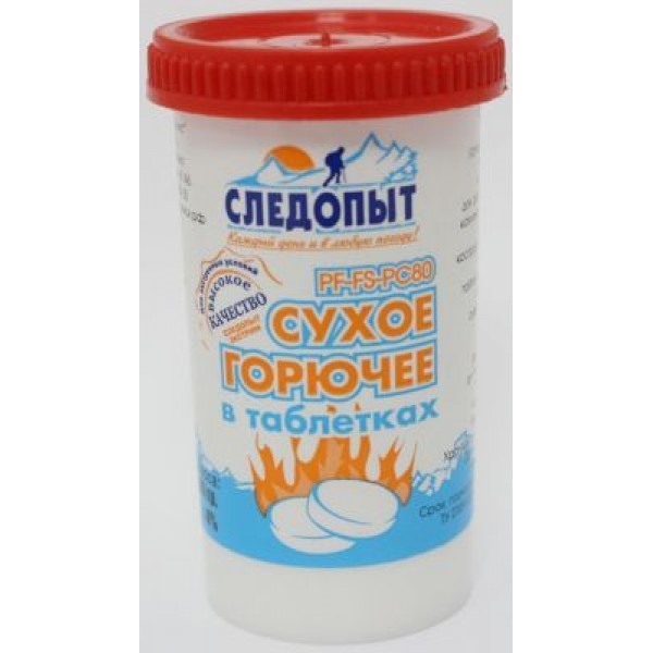 Сухое горючее СЛЕДОПЫТ-Экстрим,80 гр. предназначено для розжига печей, каминов, мангалов, шашлычниц, костров на рыбалке, охоте, в тайге, при влажном климате, при сушке погребов, подвалов, гаражей.